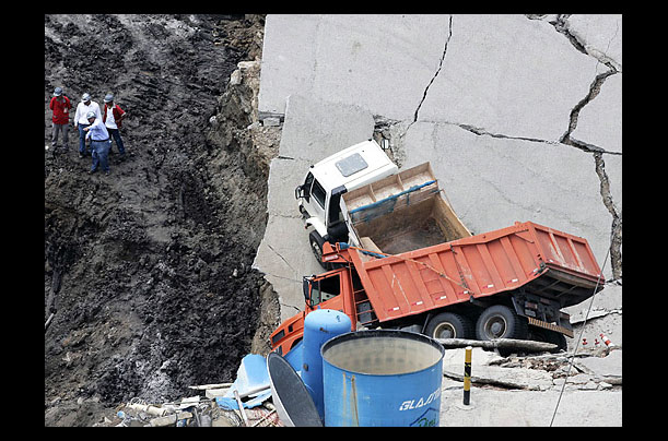 Cave In Engineers work in a hole where a subway station under construction collapsed in Sao Paolo, Brazil.