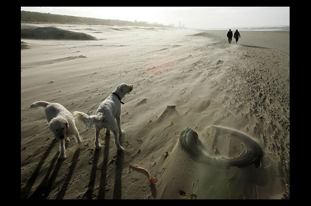 Unusually strong winds whip up a sandstorm on a beach in Zandvoort, Netherlands, which, like many parts of the globe, has seen unseasonably warm temperatures.