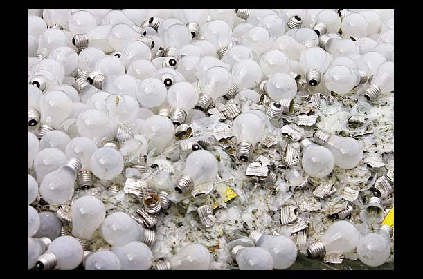 Let There be Light Bulbs Greenpeace activists crush light bulbs during a protest against energy wastefulness in Berlin, Germany.
