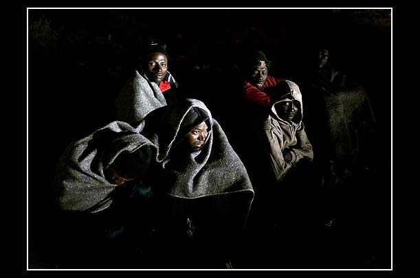 Would-be African immigrants wait at the Archiles's beach in Los Cristianos, Canary Islands.
