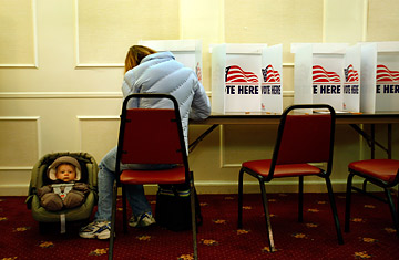 A woman votes on Super Tuesday, February 5, 2008 in Kansas City, Missouri.