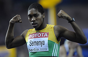South Africa's Caster Semenya celebrates after winning the women's 800-m world championship in 2009