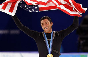 American Evan Lysacek skates during the victory ceremony after winning the gold medal at the Vancouver Olympics on Thursday, Feb. 18